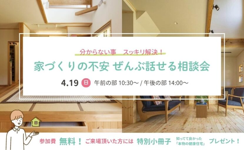4/19(日) 分からない事、スッキリ解決!【家づくりの不安 ぜんぶ話せる相談会】